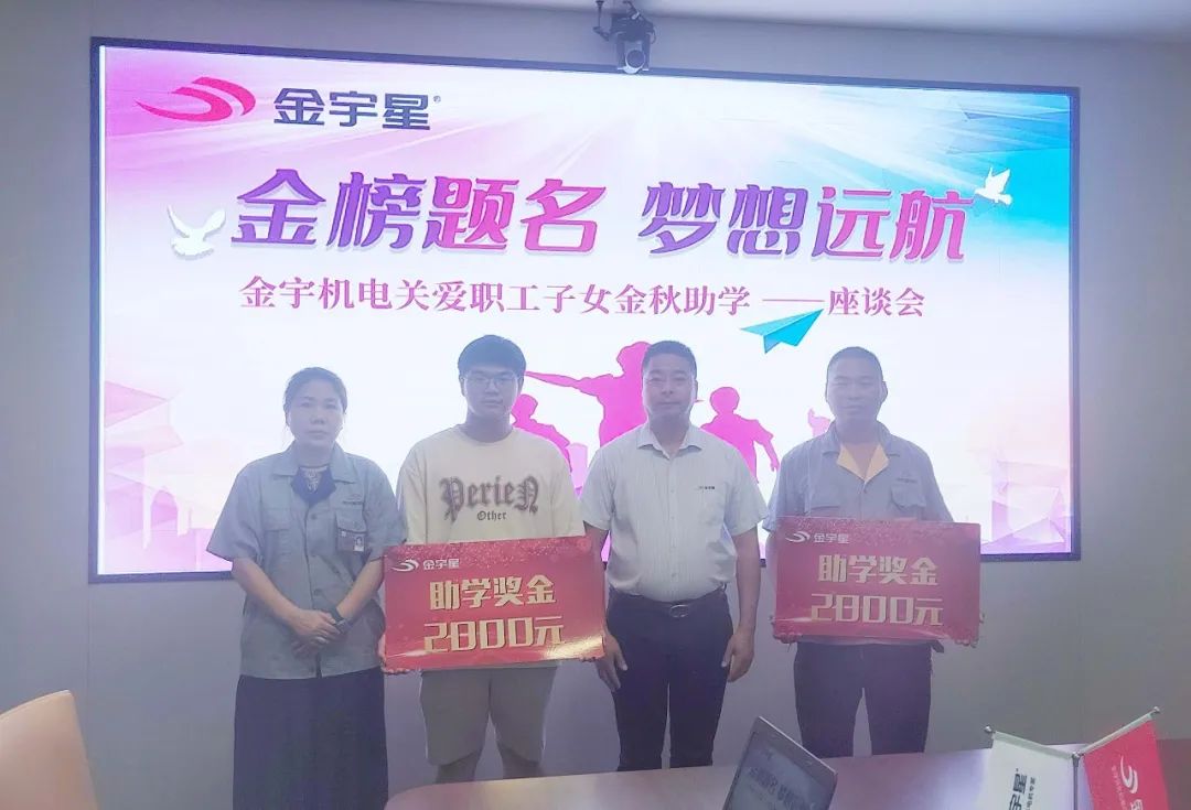 2024年8月29日,金宇機電開展了“金榜題名 夢想遠航”金宇機電關愛職工子女金秋助學座談會,為2024年考入大學本科的2名職工子女發放助學金,傳遞黨工委對職工子女的關懷和期待。